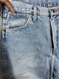 VINTAGE 40s WRANGLER 10MWZ BLUE BELL DENIM True vintage !! Original vintage 1948 Wrangler 10MWZ denim pants for men designed by celebrity tailor Rodeo Ben Straight fit, leather patch, no alteration, no major defects Item in good condition 9/10 pls refer picture carefully Size 32x34 Used Measurement Waist 32” Outseam 45”
