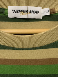 Free to send me an offer if my price not suit you🤝 Size: L Condition: 9/10 No stain, no pinhole or any flaws Superb condition and stripe Colour🔥 Embroided ape star logo on the chest NOTE: Please jugde condition with the picture given. The color might slightly different dur to lighting problem International Shipping: we also using express courier (FedEx / any express shipping takes 3-7 workings days) we will be using E-Commerse service (7-14 working days) Ship Out with tracking No returnable / Refund Thank You for your time and have a nice day!