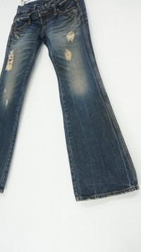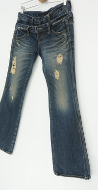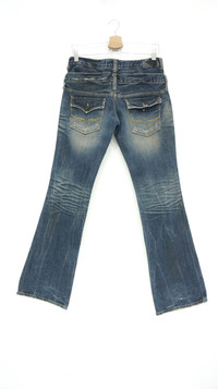 Fire! FUGA Vintage Distressed Double Waist Lowrise Flared Jeans ............................. Measurement (Inches): Waist: Recommended size 30" Tag 44 Length: 40” Inseam: 32” Front rise: 8" Thigh: 9.5” Back rise: 10.5” Hip: 19.5” Knee: 7.5" Leg opening: 9.5" ............................. Good used condition. Ripped distressed style. Missing button on rightback pocket. Rust stain on wash tag. See all photos 100% cotton Weight: 840g ............................. ➤ Please CHECK measurement & photos CAREFULLY. ➤ All sales are FINAL, No Return or Refund. ➤ Prepare & ship out from Malaysia within 1-3 working days via DHL Express (Estimated delivery 4 - 8 working days) ➤ Your contact number is required for shipping purposes. Buy with confidence, feel free to offer Thank you