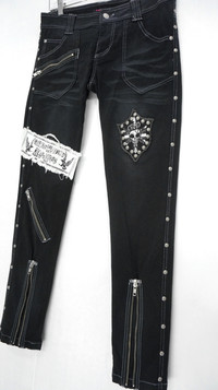 π₯ ALGONQUINS Punk Skinny Women Pants ....................................... Measurement (Inches): Waist: Recommended 30" Tag size 2 Length Outseam 38β Inseam: 28.5β Front rise: 9" Thigh: 9.5" Back rise: 11β Hip: 18β Knee: 7" Leg Opening: 5.5β ...................................................... Good used condition. Kindly see all photos 97% cotton, 3% polyurethane Weight 600g ................................................................................... β€ Please CHECK measurement & photos CAREFULLY. β€ All sales are FINAL, No Return or Refund. β€ Combined shipping is available for a great money-time saving. β€ Prepare & ship out within 1-3 working days via DHL EXPRESS (Estimated delivery in 4 - 8 working days) β€ All item will be re-laundered for disinfectant and will be handled hygienically before ship out. β€ Your contact number is required for shipping purposes. Buy with confidence, feel free to offer. Thank you