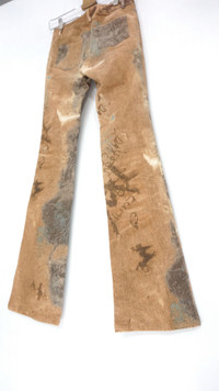 Tornado Mart Bootcut Flared Full Print Jeans *CREDIT Fit pictures from Alexmaxamenko* ....................................... Measurement (Inches): Waist: Recommended 26" (Tag 38) Length Outseam 41β Inseam 32β Front rise: 9" Thigh: 9β Back rise: 11β Hip: 16β Knee: 7" Leg Opening: 8.5β ...................................................... Very good used condition. No stain no rip no hole. Compo: 82% cotton, 14% Nylon, 4% Polyurethane Made in Japan ................................................................................... β€ Please CHECK measurement & photos CAREFULLY. β€ All sales are FINAL, No Return or Refund. β€ Combined shipping is available for a great money-time saving. β€ Prepare & ship out within 1-3 working days via DHL EXPRESS (Estimated delivery in 4 - 8 working days) β€ All item will be re-laundered for disinfectant and will be handled hygienically before ship out. β€ Your contact number is required for shipping purposes. Buy with confidence, feel free to offer. Thank you