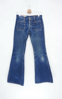 BOBSON Vintage Flare Bush Buttonfly Jeans ............................................ Measurement (Inches): Waist: Recommended size 28" Outseam: 40” Inseam: 31” Front rise: 9" Thigh: 9.5” Back rise: 11” Hip: 18” Knee: 8" Leg opening: 11" ...................................... Used condition. Sign of wear. Small patina aging mark. Please see all photos 100% cotton ................................................................................... ➤ Please CHECK measurement & photos CAREFULLY. ➤ All sales are FINAL, No Return or Refund. ➤ Prepare & ship out within 1-3 working days via DHL EXPRESS (Estimated delivery in 4 - 8 working days) ➤ Your contact number is required for shipping purposes. Buy with confidence, feel free to offer Thank you