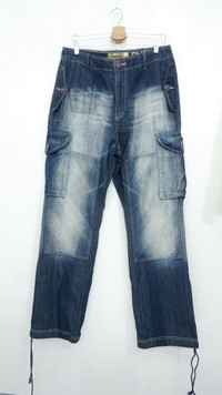 AKDMKS Akademiks Roll Up Patch Knee Cargo Jeans w/ drawstring waist and leg .................................................... Measurement (Inches): Waist: Recommended 34" (Tag 34) Outseam: 46” Inseam: 31” Front rise: 14.5" Thigh: 13.5” Back rise: 17” Hip: 47” Knee: 10.5" Leg opening:9.5" ..................................................... Good used condition. No rips / No holes. One small very soft brownish at the back (see last photo). Signs of wear. 100% cotton Weight: 1.08g ..................................................... ➤ Please CHECK measurement & photos CAREFULLY. ➤ All sales are FINAL, No Return or Refund. ➤ Prepare & ship out within 1-3 working days via DHL EXPRESS (Estimated delivery in 4 - 8 working days) ➤ Your contact number is required for shipping purposes. Buy with confidence, feel free to offer Thank you