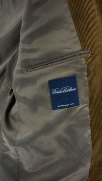BROOKS BROTHERS Shiny Olive Corduroy Blazer ............................................................................................. Measurement (Inches): Chest: 22” Recommended 40S (Japan tag 40SHT) Length: 29” Shoulder: 18." Sleeve: 22" ............................................................................................. Good used conditions. No stain, no holes (Ripped hem style) Outer: 100% Cotton Lining: 100% Polyester Made in Japan Weight: 960g / 33.8oz ............................................................................................. ➤ Please CHECK measurement & photos CAREFULLY. ➤ All sales are FINAL, No Return or Refund. ➤ Prepare & ship out within 1-3 working days via DHL (4 - 8 working days) ➤ Your contact number is required for shipping purposes. ............................................................................................. Buy with confidence, Feel free to offer Thank you
