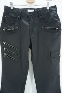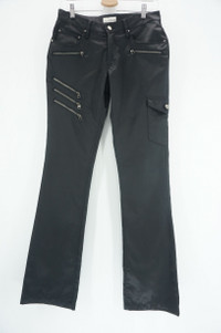 Japanese Brand - EVOLUTION - Punk Gothic Shiny Black Dummy Zipper Flared Low rise skinny women's pants 5 dummy zippers pocket ...................................................... Measurement (Inches): Waist: Recommended 29” (Tag reads 30) Length: 43” Inseam: 34” Front rise: 9.5" Back rise: 11.5” Hip: 39” Thigh: 11” Knee: 7.5” Leg Opening: 8” Cargo pocket size: 6" x 6" ...................................................... Gently used condition. No stain / No hole / No rips Colour: Solid Shiny Black Compo: 51% cotton, 49% Polyester Weight: 490g / 17.2oz ...................................................... ➤ Please CHECK measurement & photos CAREFULLY. ➤ All sales are FINAL, No Return or Refund. ➤ Prepare & ship out within 1-3 working days via DHL Express (Estimated delivery 4 - 8 working days) ➤ Your contact number is required for shipping purposes. ...................................................... Buy with confidence, feel free to offer Thank you