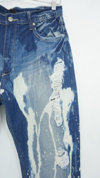 All item will be re-laundered for disinfectant and will be handled hygienically before ship out. COMBINED SHIPPING is available for a great money-time saving. ................................... AKADEMIKS Painter Abstract Distressed Jeans ................................... Measurement (Inches): Waist: Recommended size 34" (Tag size 34) Outseam: 45.5β Inseam: 33β Front rise: 12" Thigh: 12β Back rise: 14.5β Hip: 46β Knee: 9.5" Leg opening: 9.5" ................................... Good used condition. Beautiful distressed ripped style. 100% cotton Weight: 690g / 24.3oz ................................................................................... β€ Please CHECK measurement & photos CAREFULLY. β€ All sales are FINAL, No Return or Refund. β€ Prepare & ship out within 1-3 working days via DHL EXPRESS (Estimated delivery in 4 - 8 working days) β€ Your contact number is required for shipping purposes. Buy with confidence, feel free to offer Thank you