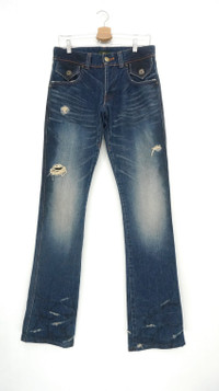 Item will be re-laundered for disinfectant and will be handled hygienically before ship out. COMBINED SHIPPING is available for a great money-time saving. .............................................. Fire Rare! OBELISK Japan Lowrise Distressed Flared Jeans ............................................... Measurement (Inches): Waist: Recommended size 29-30" (Tag 30) Outseam: 44.5” Inseam: 35” Front rise: 9.5" Thigh: 10” Back rise: 11.5” Hip: 39” Knee: 7" Leg opening: 8" ................................................ Good used condition. Signs of wear. Distressed ripped denim. 100% Cotton Weight 710g Made in Japan ................................................ ➤ Please CHECK MEASUREMENT & PHOTOS CAREFULLY, ALL SALES ARE FINAL, NO RETURN OR REFUND ➤ Prepare and ship out within 1-3 working days via DHL Express (Estimated delivery 4-8 working days) ➤ Please leave your contact no. for shipping purposes ................................................ Buy with confidence, feel free to offer Thank you.