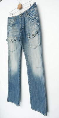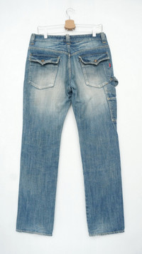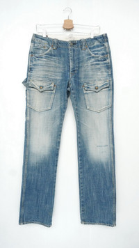 Item will be re-laundered for disinfectant and will be handled hygienically before ship out. COMBINED SHIPPING is available for a great money-time saving ............................... Rare Japanese BARTACK'S Vintage Aging Bush Jeans ............................................................. Measurement (Inches): Waist: Recommended 32” (tag shows 82cm). Length: 42” Inseam: 31.5” Front rise: 10.5" Thigh: 11” Back rise: 13” Hip: 42” Knee: 8.5" Leg opening: 8" ............................................................................................. Good used condition. Ripped leg opening and small spot on the right knee front. (See photos) 100% Cotton Weight: 855g / 30.1oz ............................................................. ➤ Please CHECK measurement & photos CAREFULLY. ➤ All sales are FINAL, No Return or Refund. ➤ Prepare & ship out within 1-3 working days via DHL EXPRESS (Estimated 4 - 8 working days delivery) ➤ Your contact number is required for shipping purposes. ............................................................. Buy with confidence, Feel free to offer Thank you