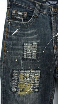 Item will be re-laundered for disinfectant and will be handled hygienically before ship out. COMBINED SHIPPING is available for a great money-time saving. ............................ Sick Vintage! DOLL Jeans Japan Distressed Fake Mud Patchwork Worn Out ...................................................... Measurement (Inches): Waist: Recommended 28” (Tag 28) Length: 42.5” Inseam: 31” Front rise: 11" Thigh: 10” Back rise: 13.5” Hip: 38” Knee: 8” Leg Opening: 8.5” ...................................................... Worn out vintage condition. Signs of wear. Ripped distressed style. Inside pocket almost torn / damaged. Please see all photos carefully. 100% cotton Weight 730g/ 25.75oz ...................................................... ➤ Please CHECK measurement & photos CAREFULLY. ➤ All sales are FINAL, No Return or Refund. ➤ Prepare & ship out within 1-3 working days via DHL EXPRESS (Estimated delivery in 4 - 8 working days) ➤ Your contact number is required for shipping purposes. Buy with confidence, feel free to offer Thank you