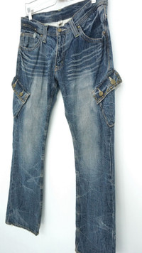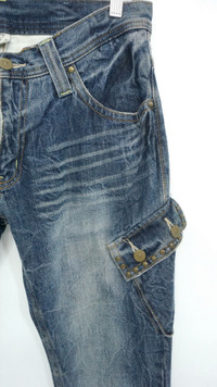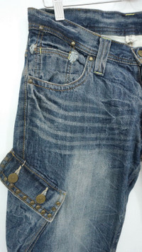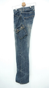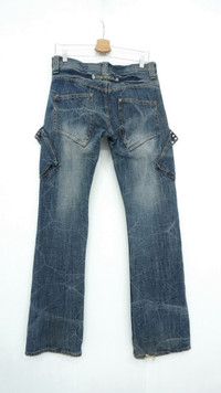 DAILY NEWS Japanese Distressed Flared Cargo Jeans Cool rivets design. ............................ Measurement (Inches): Waist: Recommended 32" (Tag 32) Outseam: 43” Inseam: 31.5" Front rise: 9" Thigh: 10” Back rise: 12” Hip: 40” Knee: 7.5" Leg opening: 9" ............................ Good used vintage condition. Signs of wear. Stained and ripped leg opening. See all photos. 100% Cotton Weight: 850g ............................ ➤ Please CHECK measurement & photos CAREFULLY. ➤ All sales are FINAL, No Return or Refund. ➤ Prepare & ship out within 1-3 working days via DHL (Estimated delivery in 4 - 8 working days) ➤ Your contact number is required for shipping purposes. ............................ Buy with confidence, feel free to offer Thank you.