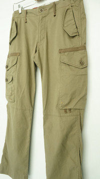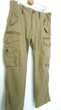 EDWIN XV Tactical Parachute Special BIG Multi Pocket Cargo Pants ................................... Measurement (Inches): Waist: Recommended 31” Tag M 78cm (30.7inch) Length: 40” Inseam: 30” Front rise: 11" Back rise: 14" Hip: 45” Thigh: 11.5” Knee: 9” Leg Opening: 8.5” ...................................................... Good used condition. No rips / No holes. Got few small soft stain spots at the leg. (Please refer photos) Composition: 78% cotton + 20% Polyester + 2% polyurethane Weight: 626g ............................ ➤ Please CHECK measurement & photos CAREFULLY. ➤ All sales are FINAL, No Return or Refund. ➤ Prepare & ship out within 1-3 working days via DHL Express (Estimated delivery 4 - 8 working days) ➤ Your contact number is required for shipping purposes. ............................ Buy with confidence, feel free to offer Thank you.