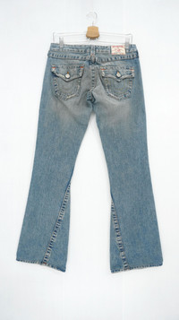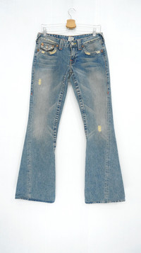 All item will be re-laundered for disinfectant and will be handled hygienically before ship out. COMBINED SHIPPING is available for a great money-time saving. ....................... Dope Flare π₯ Vintage True Religion Joey Women Jeans Browned-off blue denim .................................................................. Measurement (Inches): Waist: Recommended size 29" (Tag 29) Outseam: 39β Inseam: 31β Front rise: 7.5" Thigh: 10β Back rise: 10.5" Hip: 19β Knee: 7.5" Leg opening: 9" ..................................................................... Good used condition. Distressed ripped. See all photos 100% cotton Made in USA Weight: 640g ...................................................................... β€ Please CHECK measurement & photos CAREFULLY. β€ All sales are FINAL, No Return or Refund. β€ Prepare & ship out within 1-3 working days via DHL EXPRESS (Estimated delivery in 4 - 8 working days) β€ Your contact number is required for shipping purposes. Buy with confidence, feel free to offer. Thank you SKU J13