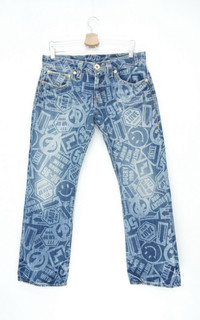 CO&LU Japan All OverPrint Smiley Denim Japan Pop Art Unisex ................................................ Measurement (Inches): Waist: Recommended size 33" (Tag code 28) Outseam: 38” Inseam: 28.5” Front rise: 9.5" Short rise Thigh: 12” Back rise: 12” Hip: 47” Knee: 9.5" Leg opening: 9" ................................................ Good used condition. Signs of wear. No rips no holes no stain. Torn and scratches on the label patch (see last pic) 100% Cotton Weight: 660 gram ................................................ ➤ Please CHECK MEASUREMENT & PHOTOS CAREFULLY, ALL SALES ARE FINAL, NO RETURN OR REFUND ➤ Prepare and ship out within 1-3 working days via DHL Express (Estimated delivery 4-8 business days) ➤ Please leave your contact no. for shipping purposes ................................................ Buy with confidence, feel free to offer Thank you.