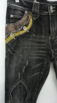 π₯ Semantic Design Faux Snakeskin Double Pocket Flared Jeans π Limited time offer FREE 1pc MASTERMIND 2ply nylon tote bag (Dimension: 15inx 15in x 3.5in, gently used) ....................................... Measurement (Inches): Waist: Recommended 28-29" Tag M Length Outseam 43.5β Inseam 33β Front rise: 9" Lowrise Thigh: 9.5" Back rise: 11β Hip: 18.5β Knee: 7.5" Leg Opening: 9β ...................................................... Good used condition. Signs of wear (Kindly see all photos) 100% cotton Weight 820g ................................................................................... β€ Please CHECK measurement & photos CAREFULLY. β€ All sales are FINAL, No Return or Refund. β€ Combined shipping is available for a great money-time saving. β€ Prepare & ship out within 1-3 working days via DHL EXPRESS (Estimated delivery in 4 - 8 working days) β€ All item will be re-laundered for disinfectant and will be handled hygienically before ship out. β€ Your contact number is required for shipping purposes. Buy with confidence, feel free to offer. Thank you