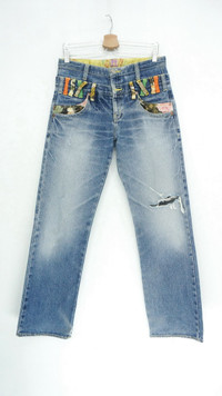 Item will be re-laundered for disinfectant and will be handled hygienically before ship out. COMBINED SHIPPING is available for a great money-time saving. .............................................. Japan BUDEN Vintage Distressed Double Waist Jeans ............................................... Measurement (Inches): Waist: Recommended size 31" (Tag M) Outseam: 41.5” Inseam: 30.5” Front rise: 11" Thigh: 11” Back rise: 13.5” Hip: 41” Knee: 9" Leg opening: 8.5" ................................................ Good used condition. Signs of wear. Distressed ripped denim. See all photos 100% Cotton Weight 800g ................................................ ➤ Please CHECK MEASUREMENT & PHOTOS CAREFULLY, ALL SALES ARE FINAL, NO RETURN OR REFUND ➤ Prepare and ship out within 1-3 working days via DHL Express (Estimated delivery 4-8 working days) ➤ Please leave your contact no. for shipping purposes ................................................ Buy with confidence, feel free to offer Thank you.