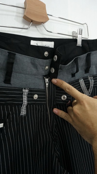 Dope SUGGESTION Triple Waist Stripe Slim Rayon Pants Slim fit ............................ Measurement (Inches): Waist: Recommended 30-31” (Tag shows M 80cm = 31.5") Length: 43” Inseam: 30.5” Front rise: 12.5" Thigh: 10” Back rise: 13.5” Hip: 38” Knee: 8” Leg Opening: 7.5” ............................. Never worn. New old stock with tag. Compo: 65% cotton + 35% rayon Weight: 585g / 20.6oz ............................. ➤ Please CHECK measurement & photos CAREFULLY. ➤ All sales are FINAL, No Return or Refund. ➤ Prepare & ship out within 1-3 working days via DHL (Estimated delivery in 4 - 8 working days) ➤ Your contact number is required for shipping purposes. ............................. Buy with confidence, Feel free to offer Thank you