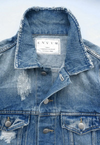 Japanese Brand ENVYM - Distressed Ripped Women Denim Jacket .......................................... Measurement (Inches): Armpit to armpit: 19” (Recommended XS-S) Length: 22.5” Condition : Good used conditions. No stain. 2 pcs dented buttons (refer last photo) Material : 100% Cotton Weight: 740 gram .......................................... ➤ PLEASE CHECK SIZE & PICTURES CAREFULLY, ALL SALES ARE FINAL, NO RETURN OR REFUND ➤ Prepare and ship out within 1-3 working days via DHL Express (Estimated delivery 4-8 working days) ➤ Please leave your contact no. for shipping purposes .......................................... Feel free to offer, Buy with confidence! Thank you for visiting