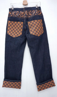 Vintage Japan HALHAM Printed Dark Blue Jeans ......................................... Measurement (Inches): Waist: Recommended 32" (Tag 83cm L size) Length: 41.5” Inseam: 30.5” Front rise: 11.5" Thigh: 11” Back rise: 13.5” Hip: 42” Knee: 9.5" Leg opening: 9" ........................................... Good used condition. No stain no holes no rips. Material: 100% cotton Weight 620g ........................................... ➤ Please CHECK measurement & photos CAREFULLY. ➤ All sales are FINAL, No Return or Refund. ➤ Prepare & ship out within 1-3 working days via DHL Express (Estimated delivery in 4 - 8 working days) ➤ Your contact number is required for shipping purposes. ..................................................... Buy with confidence, Feel free to offer Thank you