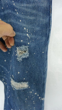 COMBINED SHIPPING is AVAILABLE for a great money-time SAVING on MULTIPLE items purchase. ............................ Vintage Japan UPSTART Bleach Splattered Jeans ............................................... Measurement (Inches): Waist: Recommended size 34" (Tag 34) Outseam: 40.5” Inseam: 29” Front rise: 11.5" Thigh: 11.5” Back rise: 14.5” Hip: 42” Knee: 9.5" Leg opening: 8" ................................................ Good used condition. Signs of wear. Distressed ripped and hole. Please see all photos. 100% Cotton Weight: 685g / 24.1oz ................................................ ➤ Please CHECK MEASUREMENT & PHOTOS CAREFULLY, ALL SALES ARE FINAL, NO RETURN OR REFUND ➤ Prepare and ship out within 1-3 working days via DHL Express (Estimated delivery 4-8 working days) ➤ Please leave your contact no. for shipping purposes ................................................ Buy with confidence, feel free to offer Thank you.
