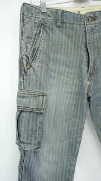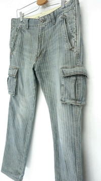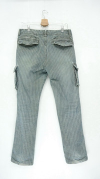 Japan Vintage GLOBAL WORK Herringbone Denim Cargo Pants Faded dusty greyish blue slightly brown off ................................................. Measurement (Inches): Waist: Recommended size 31-32" (Tag size L) Outseam: 40β Inseam: 30β Front rise: 11.5" Thigh: 11β Back rise: 13β Hip: 40β Knee: 8" Leg opening: 7.5" ................................................................................... Good used vintage condition. Faded and discoloration at some spots. One small dot stain. See photos. Signs of wear. 100% cotton Weight: 890g / 31.3oz ................................................................................... β€ Please CHECK measurement & photos CAREFULLY. β€ All sales are FINAL, No Return or Refund. β€ Prepare & ship out within 1-3 working days via DHL EXPRESS (Estimated delivery in 4 - 8 working days) β€ Your contact number is required for shipping purposes. Buy with confidence, feel free to offer Thank you J170
