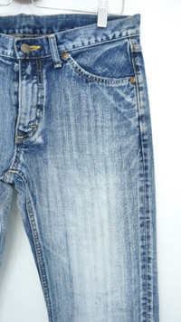All item will be re-laundered for disinfectant and will be handled hygienically before ship out. COMBINED SHIPPING is AVAILABLE for a great money-time SAVING on MULTIPLE items purchase. .................................. LEE RIDERS Vintage Faded Soft Stripe Distressed Jeans .................................. Measurement (Inches): Waist: Recommended size 30" (Tag 30x33) Outseam: 42” Inseam: 32” Front rise: 10" Thigh: 10” Back rise: 11.5” Hip: 41” Knee: 8" Leg opening: 9" ................................ Good used condition. Soft yellowish mark and some scratches. See all photos 100% cotton Weight: 680g Made in Japan .................................. ➤ Please CHECK measurement & photos CAREFULLY. ➤ All sales are FINAL, No Return or Refund. ➤ Prepare & ship out within 1-3 working days via DHL EXPRESS (Estimated delivery in 4 - 8 working days) ➤ Your contact number is required for shipping purposes. .................................. Buy with confidence, feel free to offer Thank you