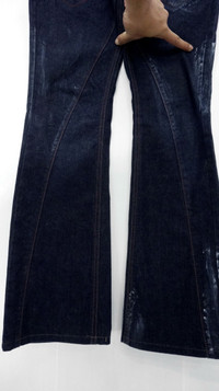Morgan De Toi Homme Painter Low rise Flared Jeans ........................ Measurement (Inches): Waist: Recommended 30” (Tag L) Length: 41.5” Inseam: 32.5” Front rise: 9" Low rise Back rise: 13” Hip: 40” Thigh: 10.5” Knee: 7.5” Leg Opening: 9” ................................................................ Good used condition. No stain no rips no holes 100% cotton, Sheep skin pocket flap Weight 780g ................................................................ ➤ Please CHECK measurement & photos CAREFULLY. ➤ All sales are FINAL, No Return or Refund. ➤ Prepare & ship out within 1-3 working days via DHL (Estimated delivery in 4 - 8 working days) ➤ Your contact number is required for shipping purposes. Buy with confidence, feel free to offer Thank you.