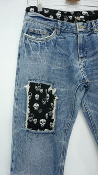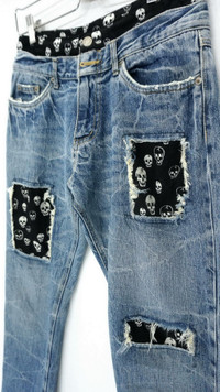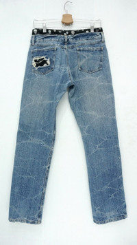 Vintage Skull Design Japan PLAYCHESS Shortrise Jeans - Stretchy cotton for the skull's part ............................. Measurement (Inches): Waist: Recommended 27-28” Length: 39” Inseam: 29” Front rise: 10.5" Thigh: 11” Back rise: 12” Hip: 42” Knee: 8.5” Leg Opening: 7.5" ............................. Good used condition. No stain. Ripped leg opening and the patched spots. 100% cotton (Faded wash tag) ............................. ➤ Please CHECK measurement & photos CAREFULLY. ➤ All sales are FINAL, No Return or Refund. ➤ Prepare & ship from Malaysia within 1-3 working days via DHL Express (Estimated delivery 4 - 8 working days) ➤ Your contact number is required for shipping purposes. ............................. Buy with confidence, feel free to offer Thank you