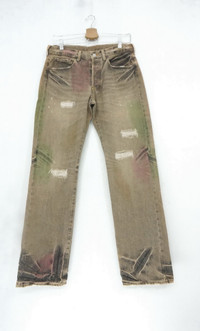 TAKEO KIKUCHI Distressed Vintage Jeans ................................ Measurement (Inches): Waist: Recommended 30" Length: 41” Inseam: 31” Front rise: 9.5" Thigh: 11” Back rise: 12.5” Hip: 20" Knee: 9” Leg Opening: 8.5” ...................................................... Good used condition. Ripped leg opening. Signs of wear. See all photos. 100% cotton Made in Japan Weight: 630g ...................................................... ➤ Please CHECK measurement & photos CAREFULLY. ➤ All sales are FINAL, No Return or Refund. ➤ Prepare & ship out within 1-3 working days via DHL (Estimated delivery in 4 - 8 working days) ➤ Your contact number is required for shipping purposes. ...................................................... Buy with confidence, feel free to offer Thank you