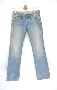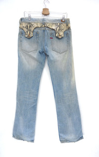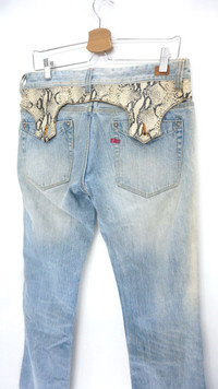 Nicole Club For Men Vintage Faded Jeans comes with faux snakeskin patch trim ....................................... Measurement (Inches): Waist: Recommended 31-32" Tag LL Length Outseam 41.5” Inseam: 32” Front rise: 9" Thigh: 10.5" Back rise: 12” Hip: 21” Knee: 8" Leg Opening: 8” ...................................................... Good used vintage condition. Sunfaded and ripped leg opening (Kindly see all photos) 100% cotton Weight: 760g ................................................................................... ➤ Please CHECK measurement & photos CAREFULLY. ➤ All sales are FINAL, No Return or Refund. ➤ Combined shipping is available for a great money-time saving. ➤ Prepare & ship out within 1-3 working days via DHL EXPRESS (Estimated delivery in 4 - 8 working days) ➤ All item will be re-laundered for disinfectant and will be handled hygienically before ship out. ➤ Your contact number is required for shipping purposes. Buy with confidence, feel free to offer. Thank you