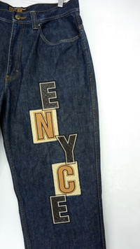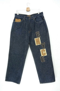 Vintage 90s ENYCE Baggy Hip Hop Spell Out Patch Jeans ....................................... Measurement (Inches): Waist: Recommended 34" (Tag reads 34") Length: 43.5” Inseam: 31” Front rise: 13" Thigh: 14” Back rise: 15” Hip: 52” Knee: 12" Leg Opening: 10.5” ...................................................... Good used condition. Item has been washed. No holes No stain. Small peeled off on leather trim. Ripped leg opening (see last two photos) 100% cotton Trim: Leather Weight: 980g / 34.5oz ...................................................... ➤ Please CHECK measurement & photos CAREFULLY. ➤ All sales are FINAL, No Return or Refund. ➤ Prepare & ship out within 1-3 working days via DHL Express (Estimated delivery 4 - 8 working days) ➤ Your contact number is required for shipping purposes. ...................................................... Buy with confidence, feel free to offer Thank you
