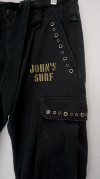 ALPHA INDUSTRIES John's Surf Cargo Military Pants - Drawstring waist - Adjustable leg opening ............................ Measurement (Inches): Waist: 30" Tag size M (76cm) Length: 42” Inseam: 33” Front rise: 10.5" Back rise: 12” Hip: 42” Thigh: 11” Knee: 9.5” Leg Opening: 9” (expanded) ............................. Good used condition / Signs of wear / Ripped both leg opening (see photos) Material: 100% cotton Weight: 700 gram / 24.6oz ............................. ➤ Please CHECK measurement & photos CAREFULLY. ➤ All sales are FINAL, No Return or Refund. ➤ Prepare & ship out within 1-3 working days via DHL Express (4 - 8 working days) ➤ Your contact number is required for shipping purposes. Thank you.