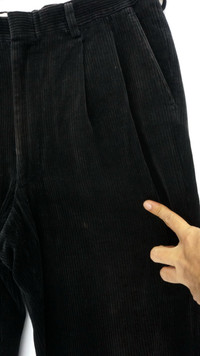 All item will be re-laundered for disinfectant and will be handled hygienically before ship out. COMBINED SHIPPING is AVAILABLE for a great money-time SAVING on MULTIPLE items purchase. .................................. Vintage DAKS London Courduroy Pants Color: Black with slight brownish tint .................................. Measurement (Inches): Waist: Recommended size 34" (Tag 88cm) Outseam: 41” Inseam: 28” Front rise: 14" Thigh: 13” Back rise: 15.5” Hip: 44” Knee: 10.5" Leg opening: 9" ................................ Good used vintage condition. Signs of wear. Slight faded. One small discoloration spot. See all photos Compo: 64% cotton + 21% Rayon + 13% rayon + 2% polyurethane Weight: 600g .................................. ➤ Please CHECK measurement & photos CAREFULLY. ➤ All sales are FINAL, No Return or Refund. ➤ Prepare & ship out within 1-3 working days via DHL EXPRESS (Estimated delivery in 4 - 8 working days) ➤ Your contact number is required for shipping purposes. .................................. Buy with confidence, feel free to offer Thank you