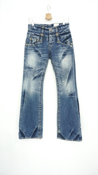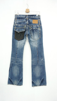 Fire Vintage Flared! ANTGAUGE Japan Distressed Blue Jeans Double waist Measurement (Inches): Waist: Recommended 29” (tag 29) Length: 41” Inseam: 31” Front rise: 10" Thigh: 8.5” Back rise: 12" Hip: 38" Knee: 7.5" Leg opening: 9" ......................................................................... Good used condition. Ripped distressed style. Some loosed on back PVC pocket also on one of the double stitch near crotch (refer last pic). Signs of wear. Marks on pvc pocket. See all photos 100% Cotton Weight: 760g ...................................................................... ➤ Please CHECK measurement & photos CAREFULLY. ➤ All sales are FINAL, No Return or Refund. ➤ Prepare & ship from Malaysia within 1-3 working days via DHL EXPRESS (Estimated 4 - 8 working days delivery) ➤ Your contact number is required for shipping purposes. ........................................................................ Buy with confidence, Feel free to offer Thank you SKU J10