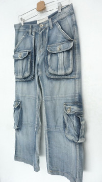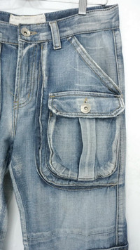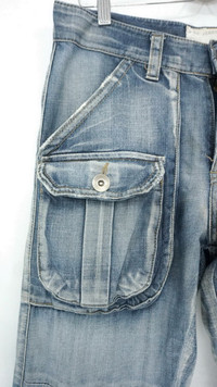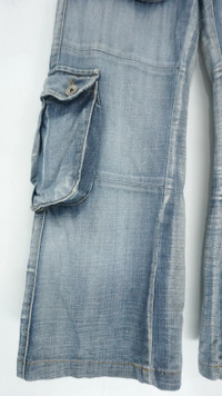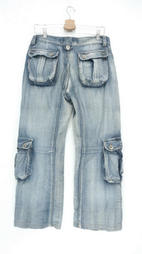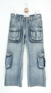 Vintage Japan S.NIK Light Wash Worn Out Cargo Jeans ................................................ Measurement (Inches): Waist: Recommended size 30" (Tag reads 28-30") Length/ Outseam: 38.5” Inseam: 27” Front rise: 11" Thigh: 11.5” Back rise: 13” Hip: 43” Knee: 10" Leg opening: 10.5" ................................................ Worn used vintage condition. Small loosed stitches on the left pocket. Very soft stain at few spots (see last 4 photos) 100% Cotton Weight: 620 gram ................................................ ➤ Please CHECK MEASUREMENT & PHOTOS CAREFULLY, ALL SALES ARE FINAL, NO RETURN OR REFUND ➤ Prepare and ship out within 1-3 working days via DHL (Estimated delivery 4-8 business days) ➤ Please leave your contact no. for shipping purposes ................................................ Buy with confidence, feel free to offer Thank you.