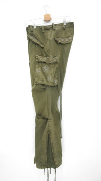 🔥 Vintage MANGROVE Japan Distressed Studded Bondage Cargo Pant 🔥 Limited time offer :) Free 1pc gently used Mastermind totebag (Nylon 2ply 15in x 15in x 3.5in) .................. Measurement (Inches): Waist: Recommended 34-35” Tag L (comes with sidetab) Length: 42.5” Inseam: 31.5” Front rise: 11" Thigh: 11.5” Back rise: 14” Hip: 22” Knee: 9.5” Leg Opening: 8.5” close, 10" open zipper .................. Good used condition. Faded vintage. Distressed ripped. Signs of wear. (see all photos) Material: 100% cotton Weight: 940g .................. ➤ Please CHECK measurement & photos CAREFULLY. ➤ All sales are FINAL, No Return or Refund. ➤ Prepare & ship out within 1-3 working days via DHL (4 - 8 working days) ➤ Your contact number is required for shipping purposes. .................. Thank you for visiting #FashioNinja#