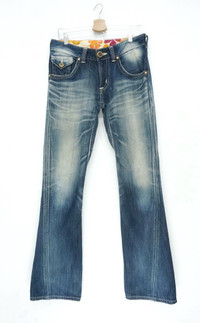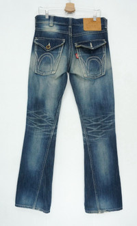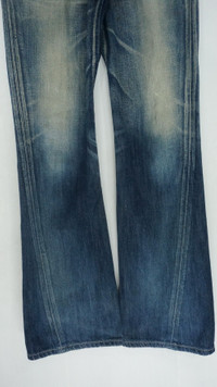 COMBINED SHIPPING is AVAILABLE for a great money-time SAVING on MULTIPLE items purchase. Japan EDWIN BLUETRIP Flared Lowrise Distressed Women's Jeans Wearable for a skinny guy :) ............................ Measurement (Inches): Waist: Recommended size 30" Tag 30 Low rise Outseam: 43.5” Inseam: 33.5" Front rise: 10" Thigh: 11” Back rise: 12.5” Hip: 43” Knee: 8" Leg opening: 9" ............................ Good used condition. Signs of wear. See last 4 photos (Ripped leg opening, small light stain, missing 1 button back pocket right side) Compo: 88% Cotton + 12% Hemp Made in Japan Weight 730g / 25.75oz ............................ ➤ Please CHECK measurement & photos CAREFULLY. ➤ All sales are FINAL, No Return or Refund. ➤ Prepare & ship out within 1-3 working days via DHL (Estimated delivery in 4 - 8 working days) ➤ Your contact number is required for shipping purposes. ............................ Buy with confidence, feel free to offer Thank you.