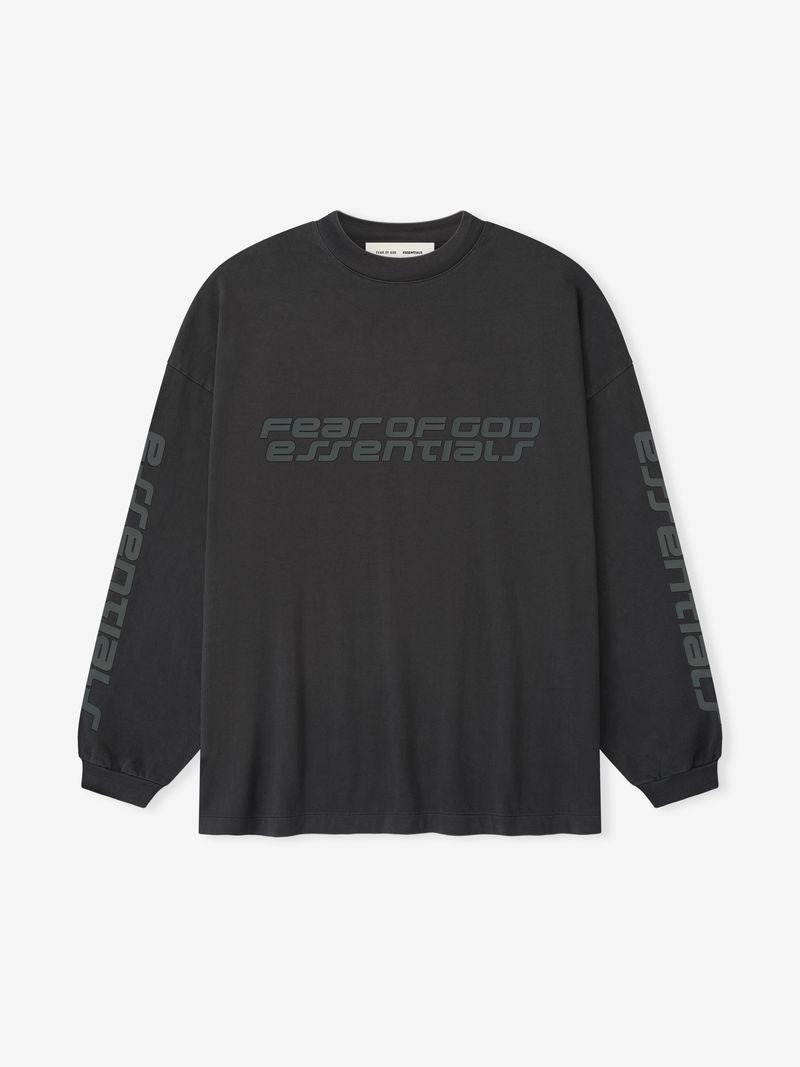 The 90s Long Sleeve Tee is made from 100% cotton jersey, offering a soft yet substantial hand feel. Designed in an oversized 90s-inspired silhouette, it features exaggerated proportions with dropped shoulders for a relaxed drape that tapers to rib-knit cuffs. The front is defined by a HD print application of the Fear of God Essentials lockup alongside the Essentials logos on the sleeves. The signature rubberized Fear of God Essentials label at the collar. DETAILS - 100% COTTON, 230GSM - ESSENTIALS 90s FIT - OVERSIZED BODY AND SLEEVES - FEAR OF GOD ESSENTIALS HD PRINT - ESSENTIALS HD PRINTS ON SLEEVES - CLASSIC RIB-KNIT COLLAR AND CUFFS - FEAR OF GOD ESSENTIALS RUBBERIZED LABEL AT BACK COLLAR - IMPORTED