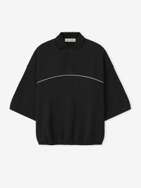 The Active Trace 3/4 Sleeve Modern Polo is crafted from core fleece and designed with volume to create a rounded, cropped silhouette. An embroidered Essentials Active Trace logo accents the front, complemented by refined piping details. Additional features include a rib-knit polo collar with a Henley placket, elastic binding at the sleeves and hem, and an Essentials signature label at the back collar.