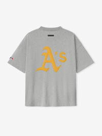 The Athletics 90s Tee is crafted from 100% cotton jersey and features an oversized ’90s fit with dropped shoulders. The front showcases an HD-printed Athletics graphic paired with the Essentials script logo, complemented by the MLB emblem on the sleeve and the iconic Athletics logo on the back. The look is finished with a Fear of God Essentials label at the back collar. Fit Note: Size Medium fits like Classic Tee XL. DETAILS - 100% COTTON JERSEY - ESSENTIALS 90s - OVERSIZED BODY AND SLEEVES - ATHLETICS ESSENTIALS GRAPHIC - MLB LOGO - ATHLETICS LOGO - CLASSIC RIB-KNIT COLLAR - FEAR OF GOD ESSENTIALS LABEL AT BACK COLLAR - IMPORTED