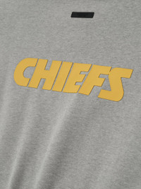 The Chiefs Sport Crewneck is crafted from heavy 480gsm core fleece and cut in a relaxed sport fit. The front features a bold "Chiefs Essentials" puff-print graphic, while the back displays the official Kansas City Chiefs logo. Additional details include a kangaroo pocket and rib-knit collar, cuffs, and waist hem. The look is finished with the signature rubberized Fear of God Essentials label. DETAILS - 80% COTTON / 20%POLYESTER FLEECE 480GSM - ESSENTIALS SPORT FIT: RELAXED, - CHIEFS ESSENTIALS GRAPHIC - KANSAS CITY CHIEFS LOGO - FEAR OF GOD LABEL - KANGAROO POCKET - RIB KNIT COLLAR, CUFF AND WAIST HEM - IMPORTED