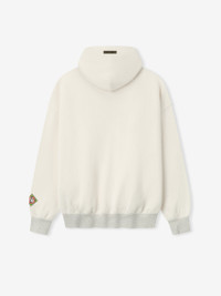 The Fear of God Essentials Black Crackers Hoodie is made from core fleece and has a modern fit for a relaxed, cropped silhouette. The front showcases a felt "Black Crackers" graphic, and there is a jersey patch from the Negro Leagues Baseball Museum on the sleeve. Additional features include a double-layered hood, side seam pockets, and rib-knit at the cuffs and waist hem. A rubberized Fear of God Essentials label is attached on the hood. DETAILS - 80% COTTON / 20% POLYESTER HEAVYWEIGHT FLEECE - ESSENTIALS MODERN FIT - CROPPED, VOLUMINOUS BODY, SLEEVES - PUFFER PRINT BLACK CRACKERS - NEGRO LEAGUES BASEBALL MUSEUM PATCH - ESSENTIALS FEAR OF GOD RUBBERIZED LABEL ON THE HOOD - DOUBLE LAYERED HOOD - ELASTIC BINDING AT CUFF AND TAPERED WAISTBAND - IMPORTED