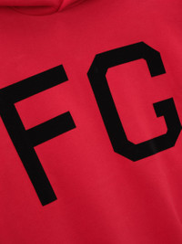 The Fear of God Essentials FG Monarchs Hoodie is made from core fleece with a modern fit for a relaxed, cropped silhouette. The front features a felt "FG" graphic, while the sleeve showcases a jersey patch from the Negro Leagues Baseball Museum. On the back, you'll find a puffer print "Monarchs Essentials" lockup. Additional details include a double-layered hood, side seam pockets, and rib-knit at the cuffs and waist hem. A rubberized Fear of God Essentials label is attached on the hood. DETAILS - 80% COTTON / 20% POLYESTER HEAVYWEIGHT FLEECE - ESSENTIALS MODERN FIT - CROPPED, VOLUMINOUS BODY, SLEEVES - PRINTED FG AND MONARCHS ESSENTIALS LOCKUP - NEGRO LEAGUES BASEBALL MUSEUM PATCH - ESSENTIALS FEAR OF GOD RUBBERIZED LABEL ON THE HOOD - ELASTIC BINDING AT CUFF AND TAPERED WAISTBAND - IMPORTED