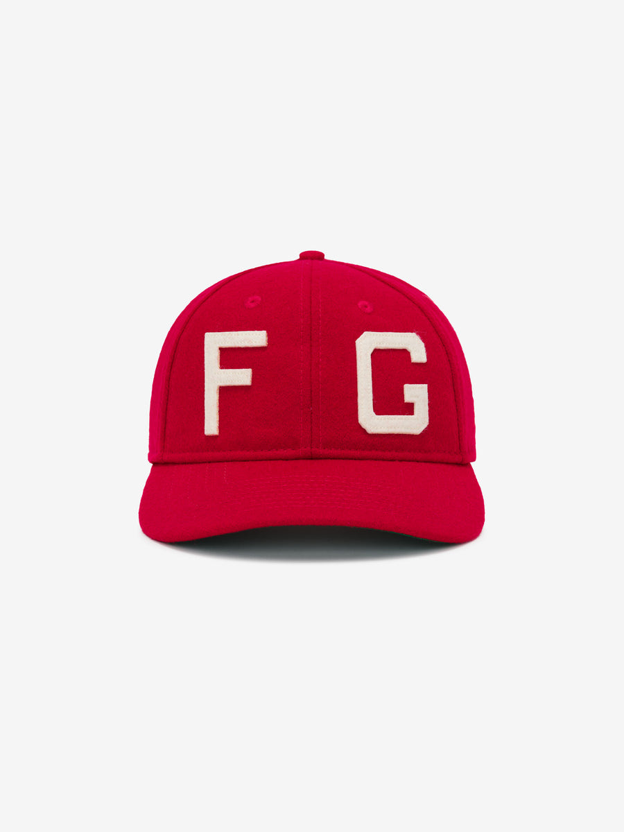 The Fear of God Essentials FG Monarchs 9FORTY adjustable cap features the Kansas City Monarchs color fabrication with a felt FG logo at the front panels and a Fear of God label on the adjustable strap at the rear. DETAILS - FULLY FITTED 9FORTY CAP - CONTRASTING GREEN UNDERVISOR - FELT FG ON FRONT - EMBROIDERED NEW ERA SCRIPT LOGO ON SIDE - FEAR OF GOD LABEL AT BACK - 100% WOOL - IMPORTED