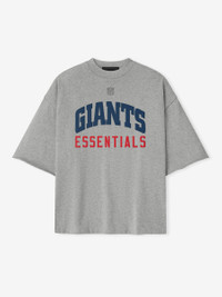 The Giants Sport 3/4 Sleeve Football Tee is crafted from heavy 100% cotton jersey and designed in an extra-oversized fit with proportions inspired by 90s throwback football jerseys. The front features a bold "Giants Essentials" puff-print graphic paired with the NFL shield, while the back displays the official New York Giants logo. Additional details include rib-knit collar, and 3/4 sleeves with raw hemline. The look is finished with the signature rubberized Fear of God Essentials label. Important Fit Note: Size Medium fits like Classic Tee XL. DETAILS - 100% COTTON HEAVY JERSEY - 90s OVERSIZED FOOTBALL FIT - GIANTS ESSENTIALS GRAPHIC - NEW YORK GIANTS LOGO - FEAR OF GOD ESSENTIALS LABEL - 3/4 SLEEVES WITH RAW HEMLINE - RIB KNIT COLLAR - IMPORTED