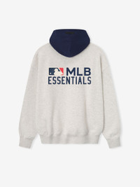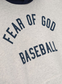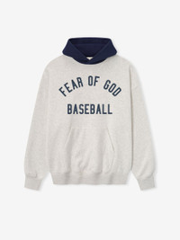 The MLB Sport Hoodie is crafted from core fleece, offering an elevated balance of softness, structure, and lasting comfort. Cut in a relaxed sport fit, it drapes with more ease through the body and extended length compared to the Essentials classic silhouette. The front features a bold puffer-print graphic reading "Fear of God Baseball" while the back is finished with a "MLB Essentials" lockup. Additional features include a contrasting double-layered hood, kangaroo pocket, rib-knit at the cuffs and waist hem. The signature rubberized Fear of God Essentials label accents the hood. DETAILS - 80% COTTON / 20%POLYESTER FLEECE - ESSENTIALS SPORT FIT: RELAXED, CROPPED - FEAR OF GOD BASEBALL LOGO - FEAR OF GOD LABEL - KANGAROO POCKET - ELASTIC BINDING AT CUFF AND WAIST HEM - IMPORTED