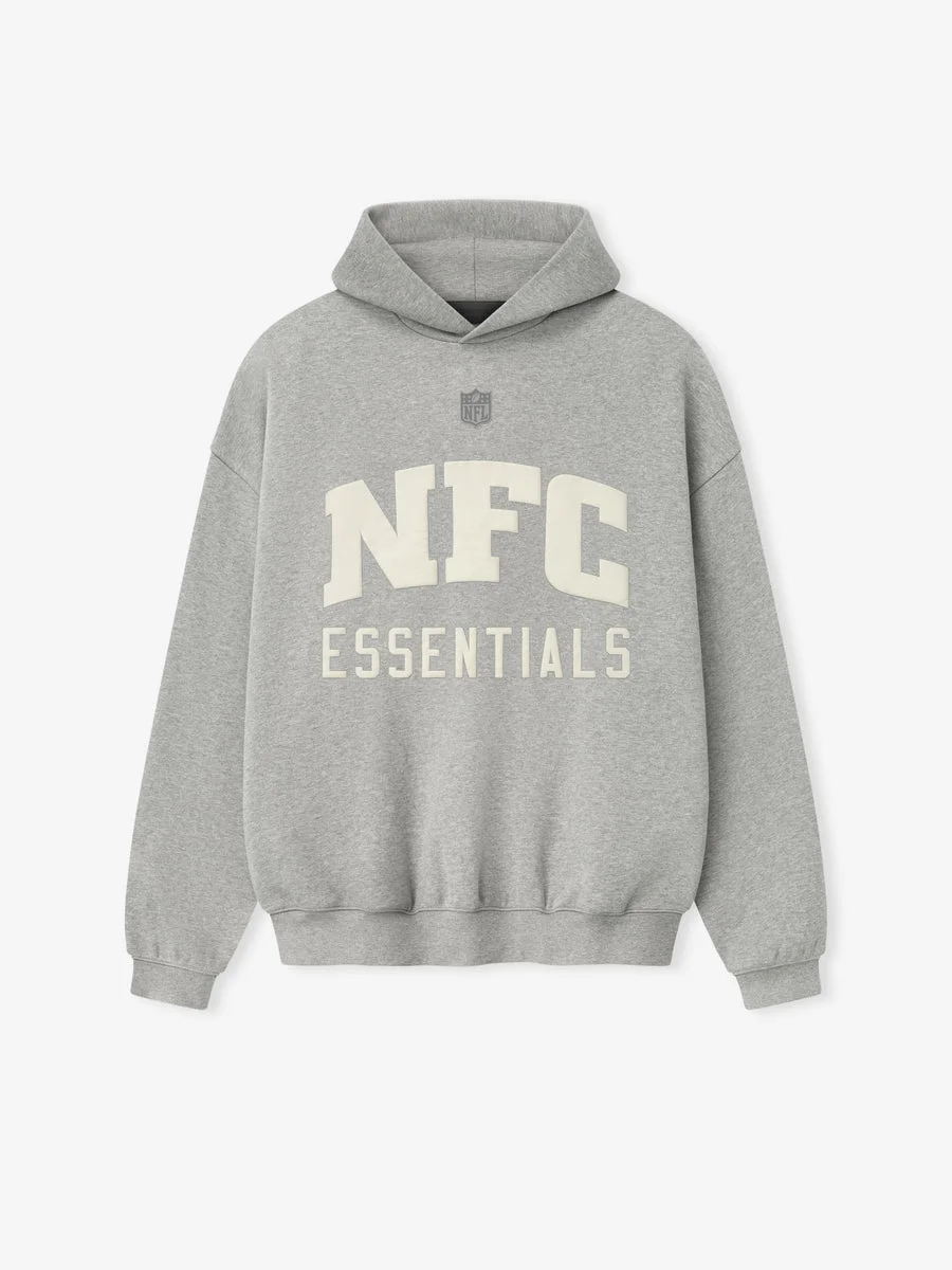 The National Sport Hoodie is crafted from heavy 480gsm core fleece and cut in a relaxed sport fit. The front features a bold "National Essentials" puff-print graphic while the back is finished with National Football Conference logo. Additional features include side pockets, rib-knit at the cuffs and waist hem. The signature rubberized Fear of God Essentials label accents the hood. DETAILS - 80% COTTON / 20%POLYESTER FLEECE - ESSENTIALS SPORT FIT: RELAXED, - NATIONAL ESSENTIALS GRAPHIC - NATIONAL FOOTBALL CONFERENCE LOGO - FEAR OF GOD LABEL - SIDE POCKETS - RIB KNIT COLLAR, CUFF AND WAIST HEM - IMPORTED