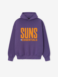 A limited-edition Essentials collection celebrating the NBA China Games in Macao.The Brooklyn Nets and Phoenix Suns face off in two preseason matchups on Friday, October 10, and Sunday, October 12, at The Venetian Arena. The Suns Sport Hoodie is crafted from core fleece, offering an elevated balance of softness, structure, and lasting comfort. Cut in a relaxed sport fit, it drapes with more ease through the body and extended length compared to the Essentials classic silhouette. The front features a bold puffer-print graphic "Suns Essentials " alongside the authentic NBA logo, while the back showcases the Phoenix Suns graphic logo. Additional features include side pockets, rib-knit at the cuffs and waist hem. The signature rubberized Fear of God Essentials label accents the hood. DETAILS - 80% COTTON / 20%POLYESTER FLEECE - ESSENTIALS SPORT FIT: RELAXED - SUNS ESSENTIALS LOCKUP - NBA LOGO - SUNS LOGO - FEAR OF GOD LABEL - SIDE POCKETS - ELASTIC BINDING AT CUFF AND WAIST HEM - IMPORTED