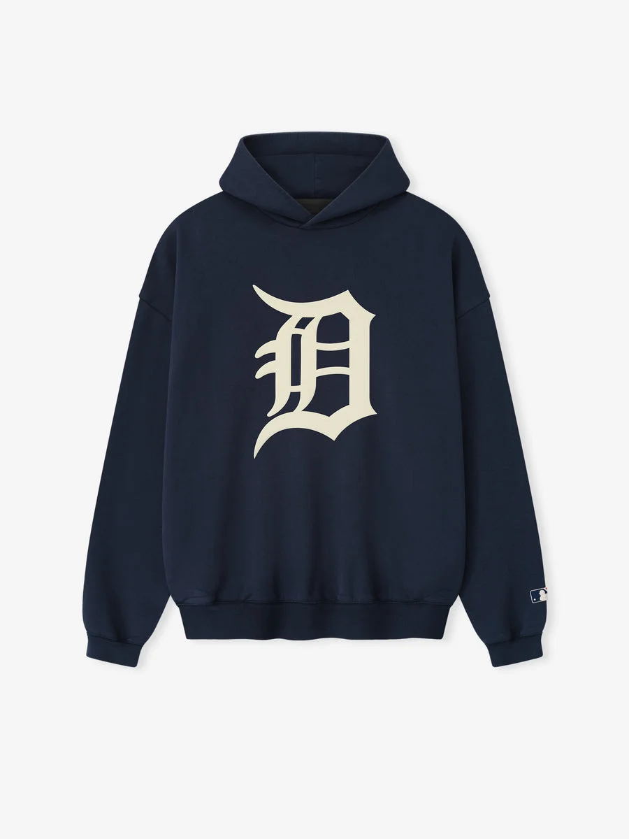 The Tigers Sport Hoodie is crafted from pigment-dyed, heavyweight 520gsm cotton fleece, delivering a faded vintage feel and a sense of sports nostalgia. Designed in a relaxed Sport fit, the front features the iconic Detroit Tigers logo in a HD print, while the back showcases an Detroit Essentials script lockup. Additional details include a MLB logo on the sleeve, side pockets, and rib-knit cuffs and waist hem. The look is finished with the signature rubberized Fear of God Essentials label at the hood. DETAILS - 100% COTTON 520GSM PIGMENT-DYED FLEECE - ESSENTIALS SPORT RELAXED FIT - DETROIT ESSENTIALS LOCKUP - DETROIT TIGERS LOGO - MLB LOGO - FEAR OF GOD ESSENTIALS LABEL - SIDE POCKETS - RIB KNIT BINDING AT CUFF AND WAIST HEM - IMPORTED