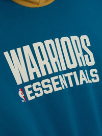 The Warriors Sport Hoodie is crafted from core fleece, offering an elevated balance of softness, structure, and lasting comfort. Cut in a relaxed sport fit, it drapes with more ease through the body and extended length compared to the Essentials classic silhouette. The front features a bold puffer-print graphic "Warriors Essentials " alongside the authentic NBA logo, while the back showcases the "Golden State" logo. Additional features include contrasting hood, side pockets, rib-knit at the cuffs and waist hem. The signature rubberized Fear of God Essentials label accents the hood. DETAILS - 80% COTTON / 20%POLYESTER FLEECE - ESSENTIALS SPORT FIT: RELAXED, CROPPED - WARRIORS ESSENTIALS LOCKUP - NBA LOGO - GOLDEN STATE LOGO - FEAR OF GOD LABEL - SIDE POCKETS - ELASTIC BINDING AT CUFF AND WAIST HEM - IMPORTED