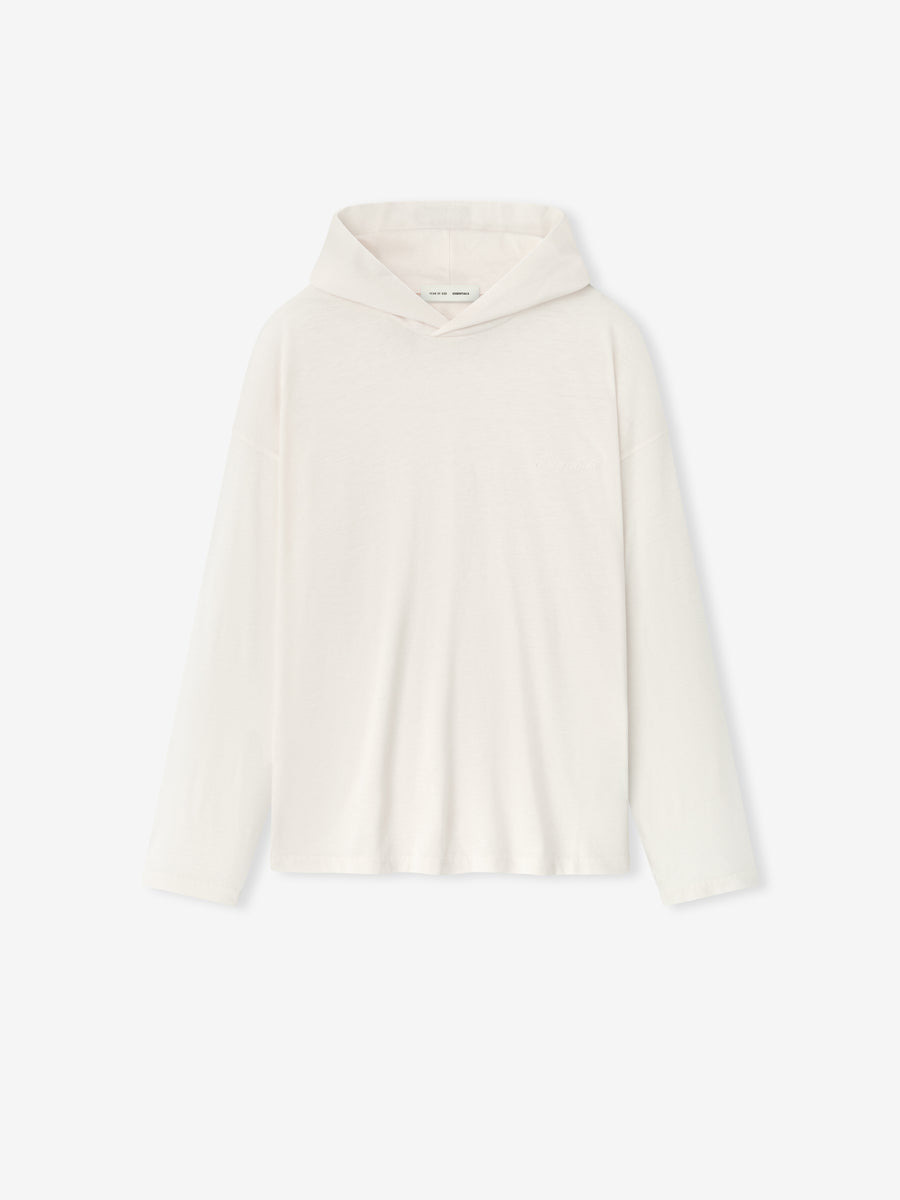 The Women’s Classic Hooded Long Sleeve Tee is crafted from lightweight core jersey for an airy, comfortable feel. Designed with a relaxed fit through the body, the tee is finished with a hood and rib-knit cuffs. Branding details include an embroidered script “Essentials” logo on the front and a Fear of God Essentials label at the back collar. DETAILS - 60% cotton, 40% polyester 125gsm - Women's Classic fit - relaxed body - Essentials embroidered logo - Hood - Rib-knit cuffs - Fear of God Essentials label